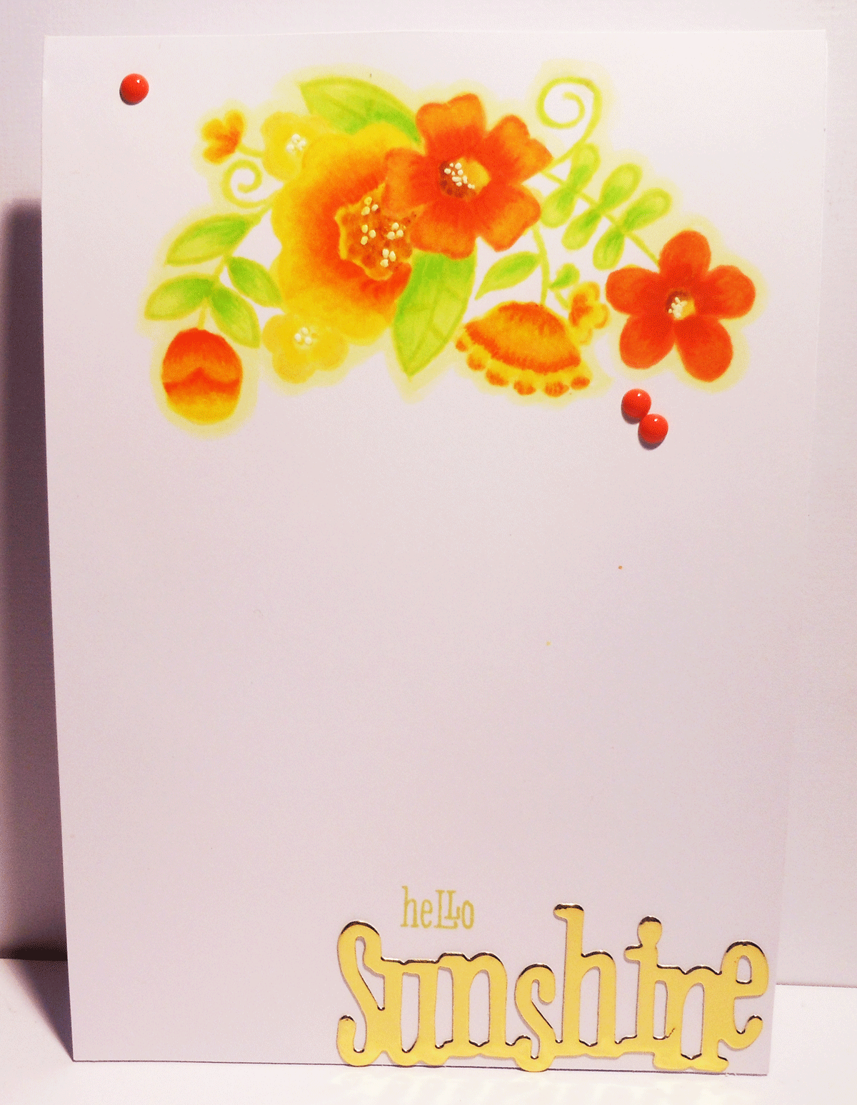 Anyway, I finished it off with a gold die cut 'Sunshine' and stamped 'hello' in pale green but that looks more yellow here.