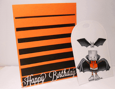 I finished off by outlining the main characters in B000 then again but finer with B00. Anything that wasn't clearly stamped I went over with my multiliner pen. This is quite a large card so I made it a long card and the 'birthday' die sentiment is being held up by the robot and the birthday is holding up the 'happy' sentiment.