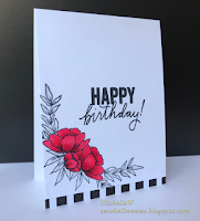 I loved her card the minute I saw it, the stark black and white with a splash of red, the flowers just in the corner, stamped sentiment and the addition of pattern paper at the bottom.