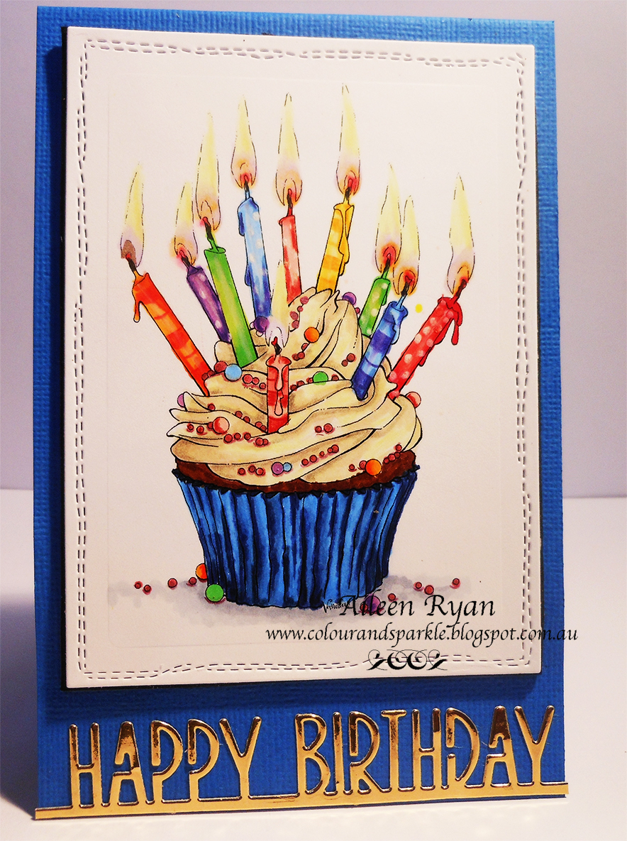 This is Aarons' Birthday card. I coloured this same image a while ago and decided to do the same colours again. It was a free class download from Amy at Vanilla Arts and I just love how it turned out.