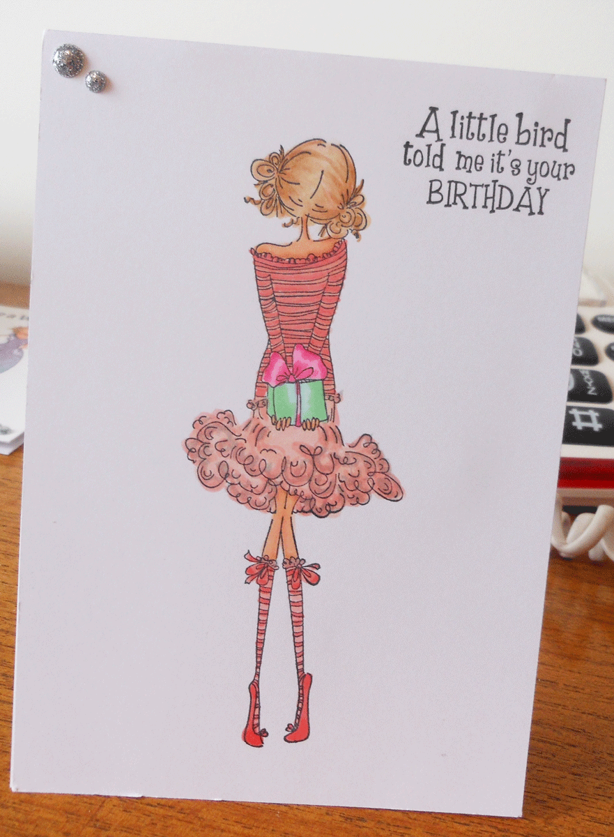 I decided that since she is hiding the gift it fitted with the sentiment I have used.