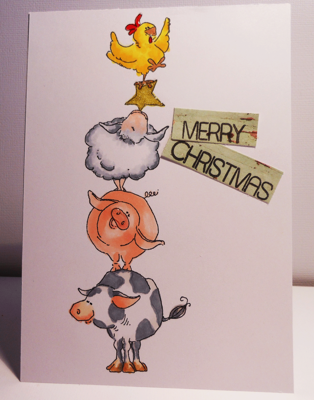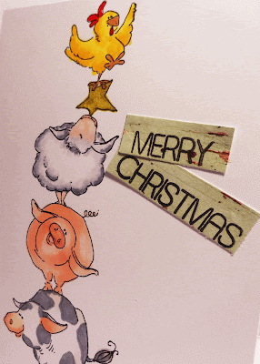 I love the sentiment. I stamped onto some scraps of paper that look like old farm house peeling paint boards. Single layer card, really not don't for anything special but thought I might get a move on with the Christmas cards.