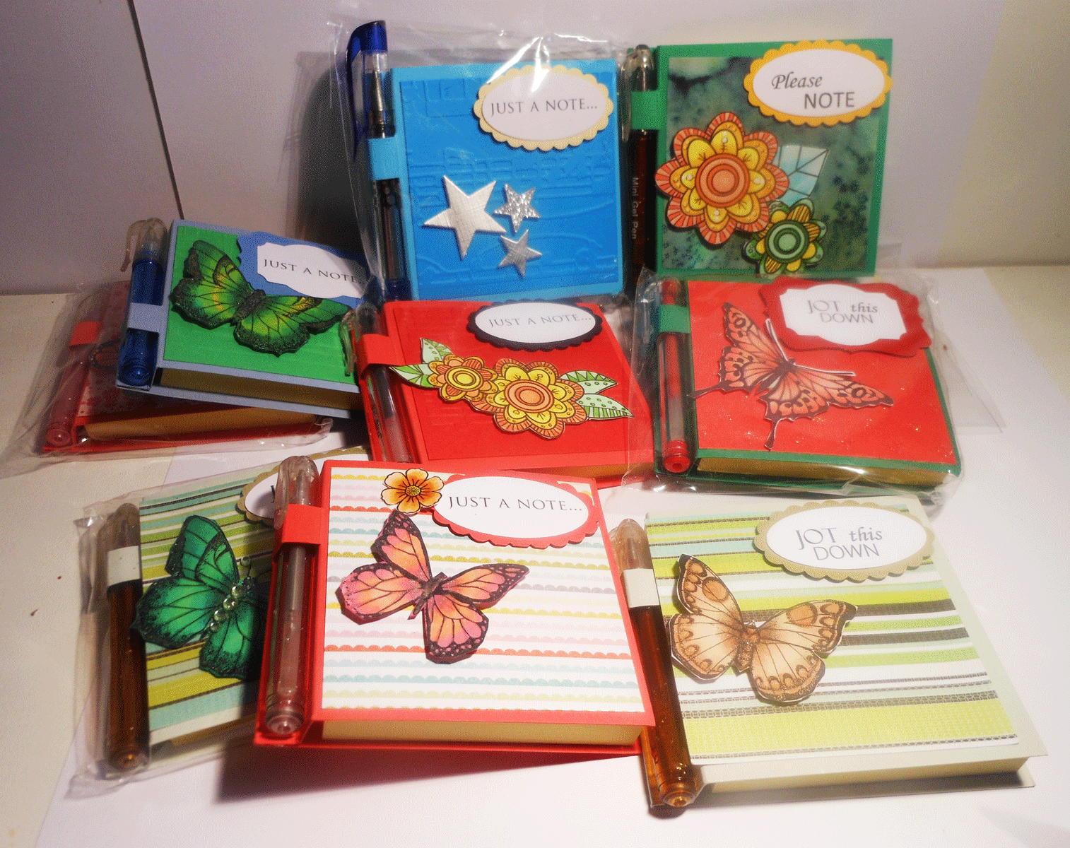 Nothing too exciting and not all of them but gives you an idea of what they are like. So easy to make and everyone seems to enjoy using them. Great way to use up scraps of paper and bits of embossed paper and some of the butterflies and flowers I always seem to be colouring in.