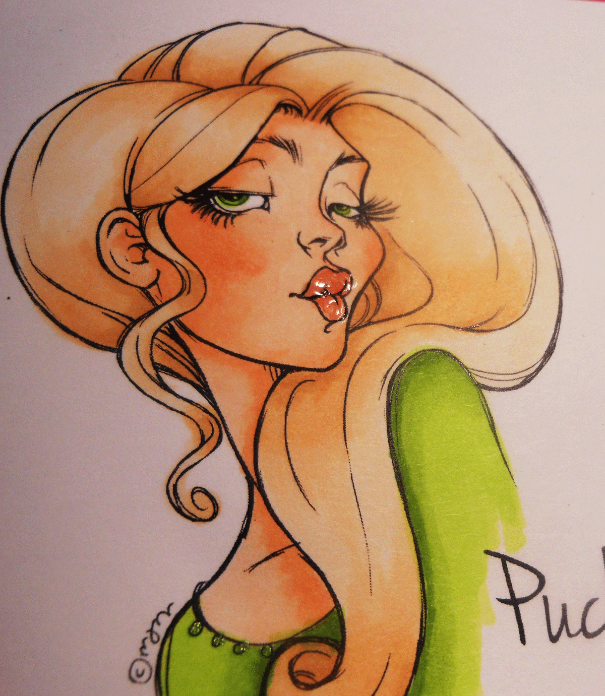 With this one I wanted her to be blonde, green eyes. Felt it came out okay and decided to put her on a bright pink cardbase with a layer of fun foam between her and the card. Finished her off with 3 little gems, a wee bit of sparkle on her top and some glossy accents on her lips.