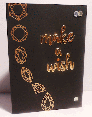 Check out the sparkle the camera has managed to catch. Anyway cut panel down and still have a piece for a more CAS card. I added a mirrored gunmetal grey card to the back then onto a black cardbase and finished off with a silver 'congrats' sentiment. Was originally trying for a small sentiment on white then on vellum and they just didn't work.