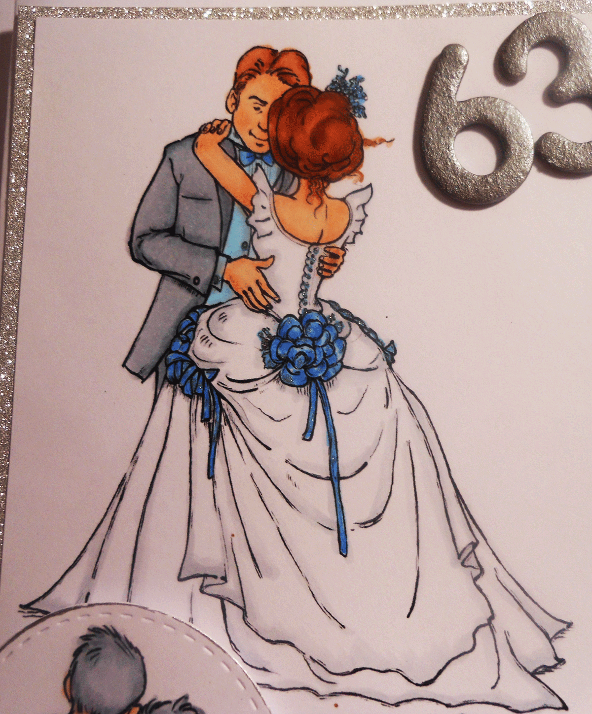 All of course coloured with copics and a wee bit of blue shimmer gel pen around the blue ribbon on the wedding dress.